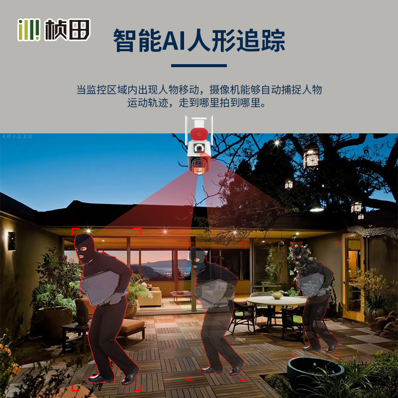 · 双镜头联动监控,画面上下拼接成600万,图像清晰,细腻